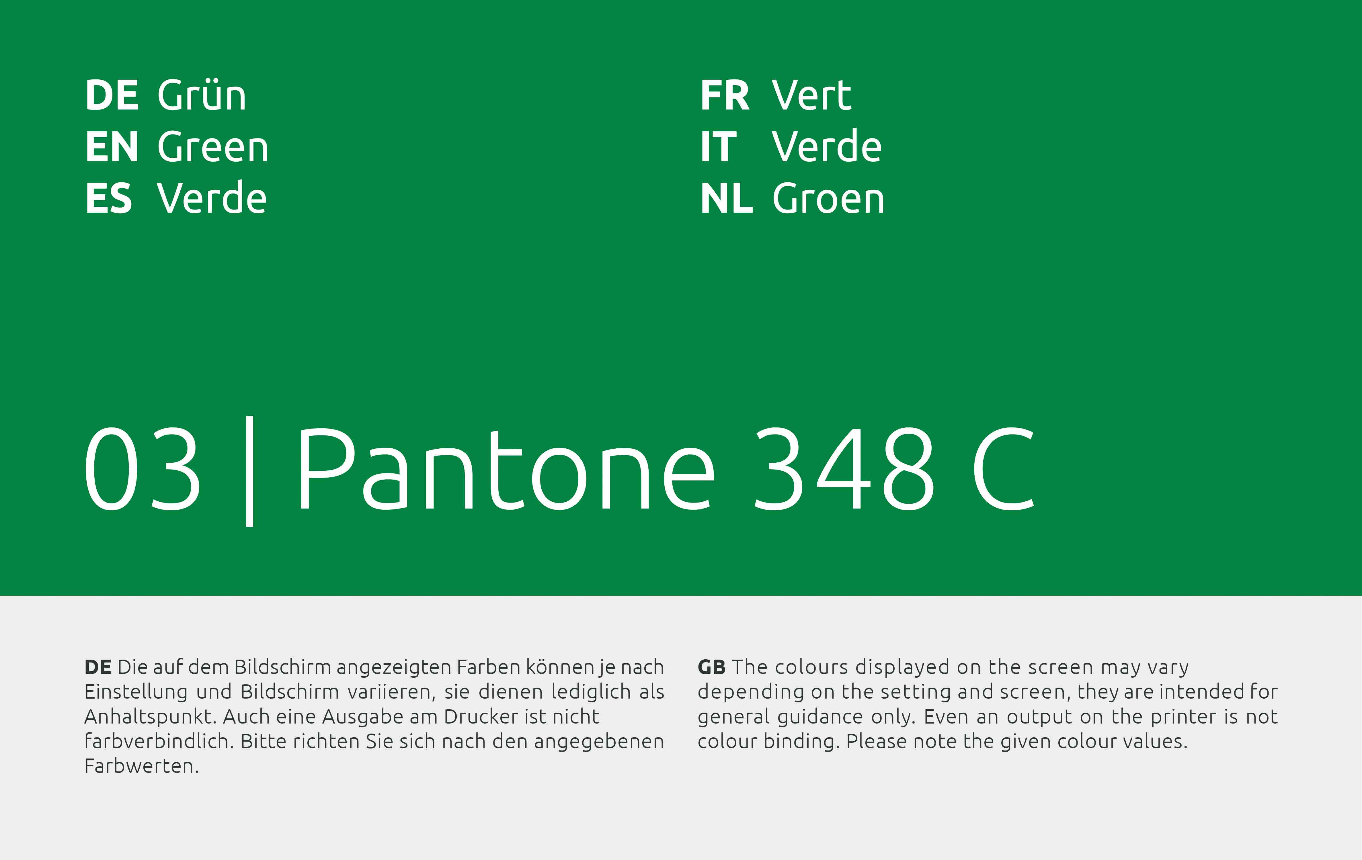 Die Bänder sind in diesen Farben erhältlich: Grau (Pantone 427 C), Grün (Pantone 348 C), Rot (Pantone 485 C), Gelb (Pantone 109 C), Blau (Pantone 3005 C) und in Schwarz.