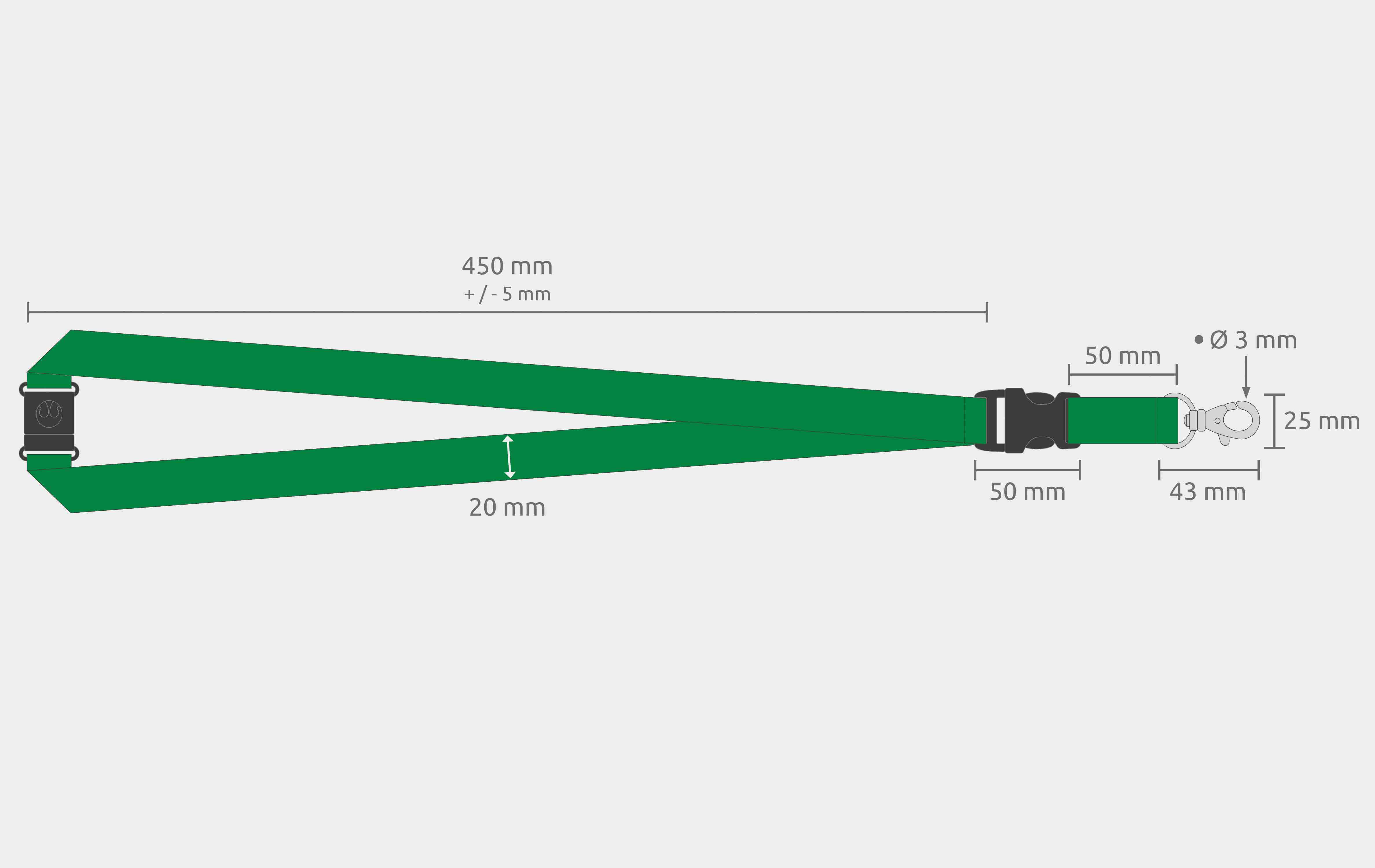 Schlüsselbänder 20 mm, 2x easy going Haken, Sicherheitsverschluss, Schiebeschnalle, Grün