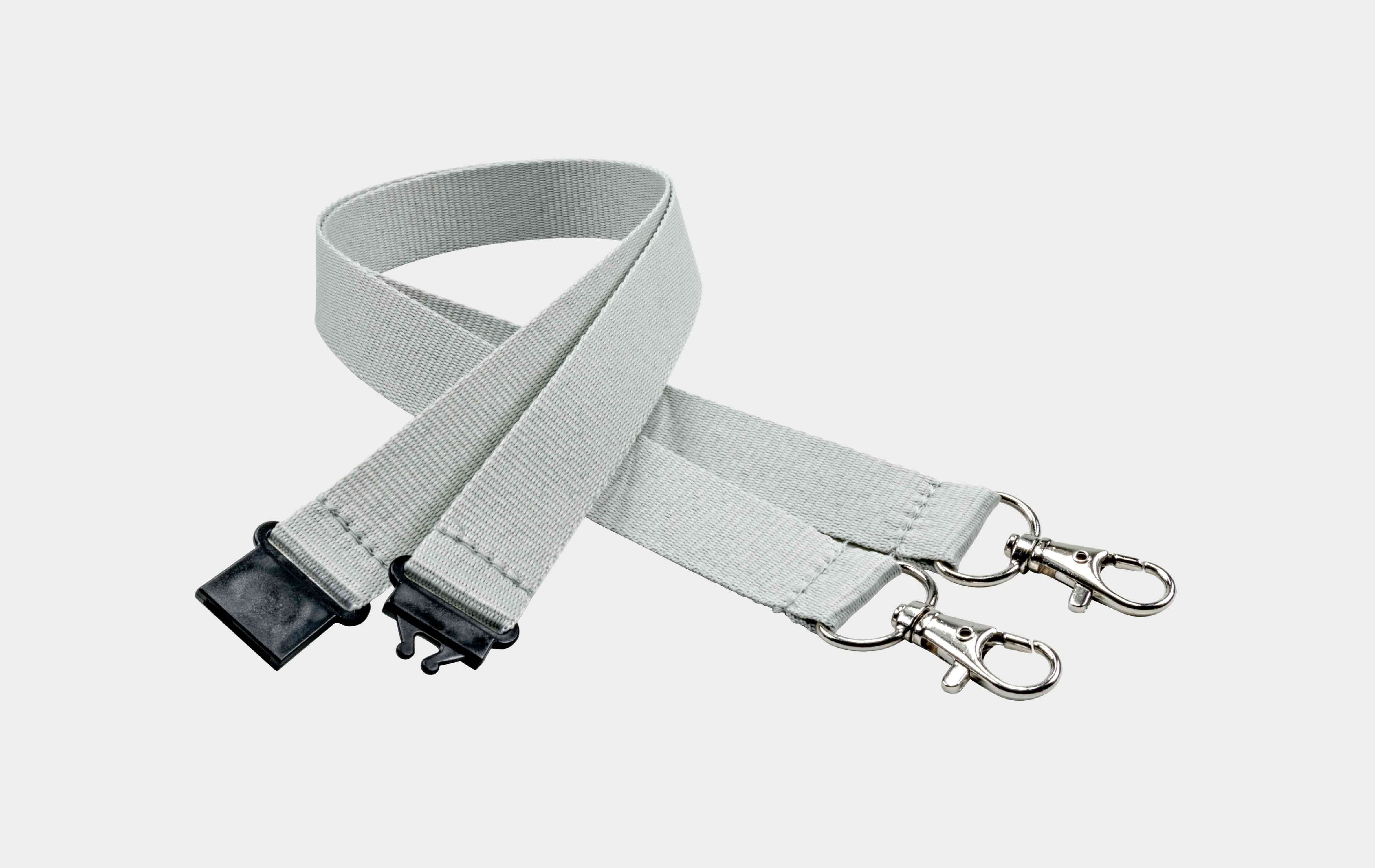 Schlüsselbänder 20 mm, 2x easy going Haken, Sicherheitsverschluss. Grau