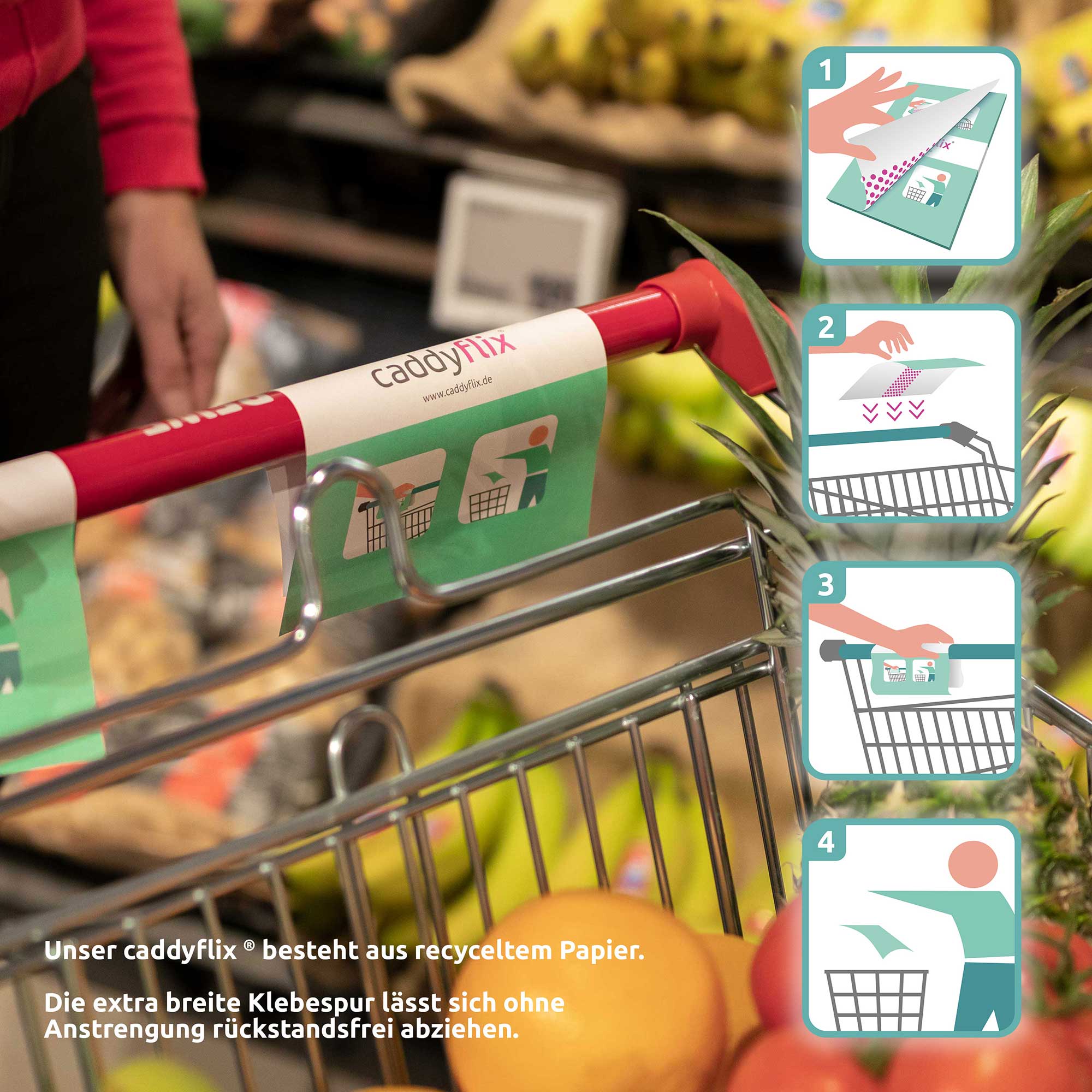 - Einfach, praktisch. Mit unserem caddyflix ® vermeidest Du den direkten Kontakt zum Einkaufswagengriff.